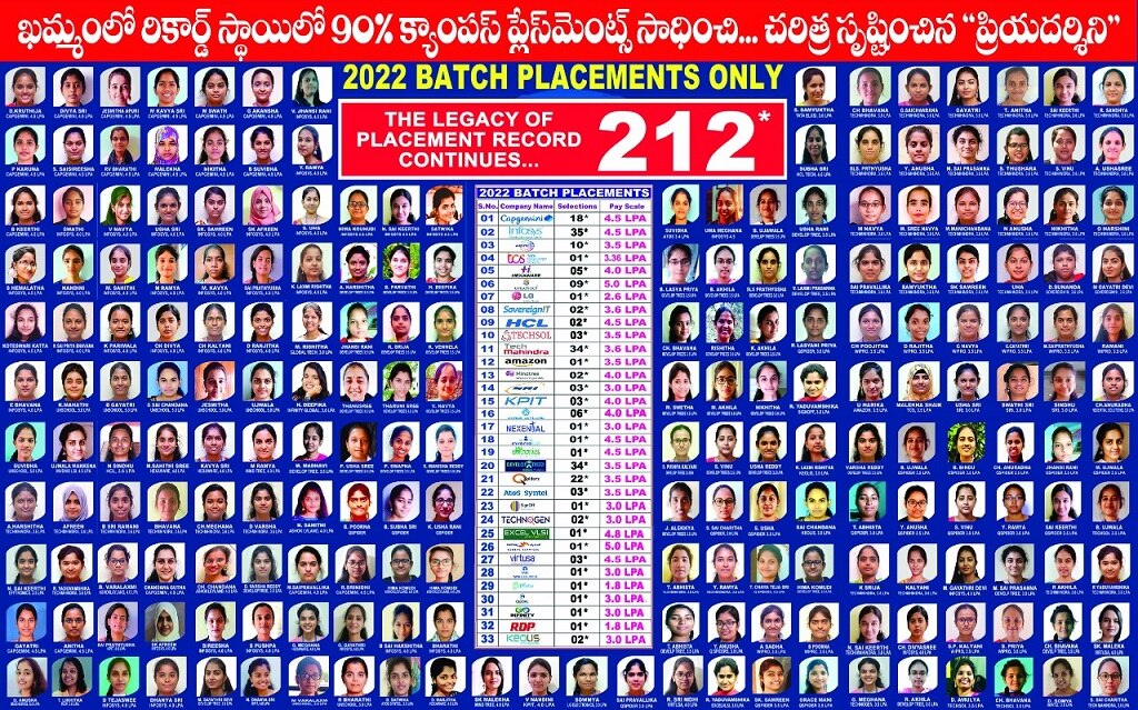 The Institution received many awards and appreciations for imparting quality education at a very affordable cost and the institute is well disciplined and safe for girl students studying in and around of Khammam.